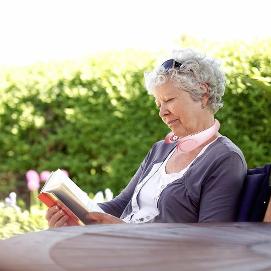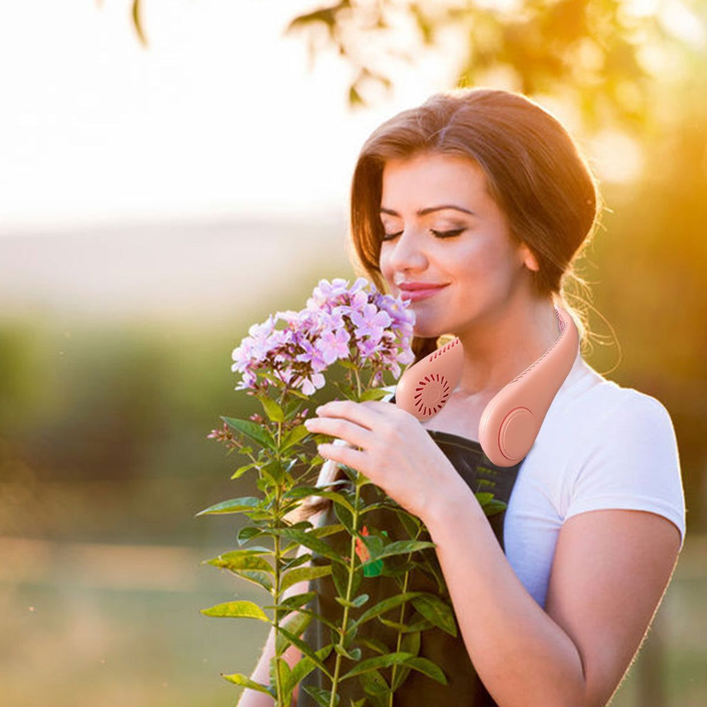 This USB rechargeable battery-operated neck fan is so awesome; it makes feeling a cool breeze easy and enjoyable. Let your hair flow naturally in the fresh air with this neck fan; as it is bladeless and won't tangle your hair. It's also hands-free and portable; which enables you to enjoy fresh and cool air indoors and outdoors. Adjust the wind speed as per your need and stay cool while you get on a treadmill; plant roses in your garden; or cook in your backyard. The neck fan is lightweight and stays quiet while giving you a powerful blast of cool air.