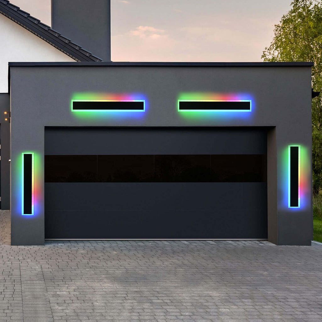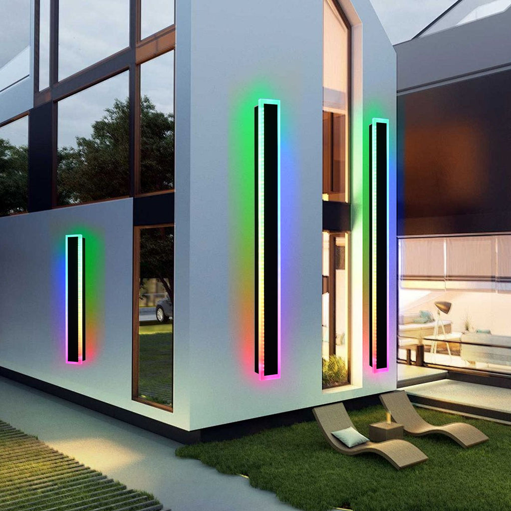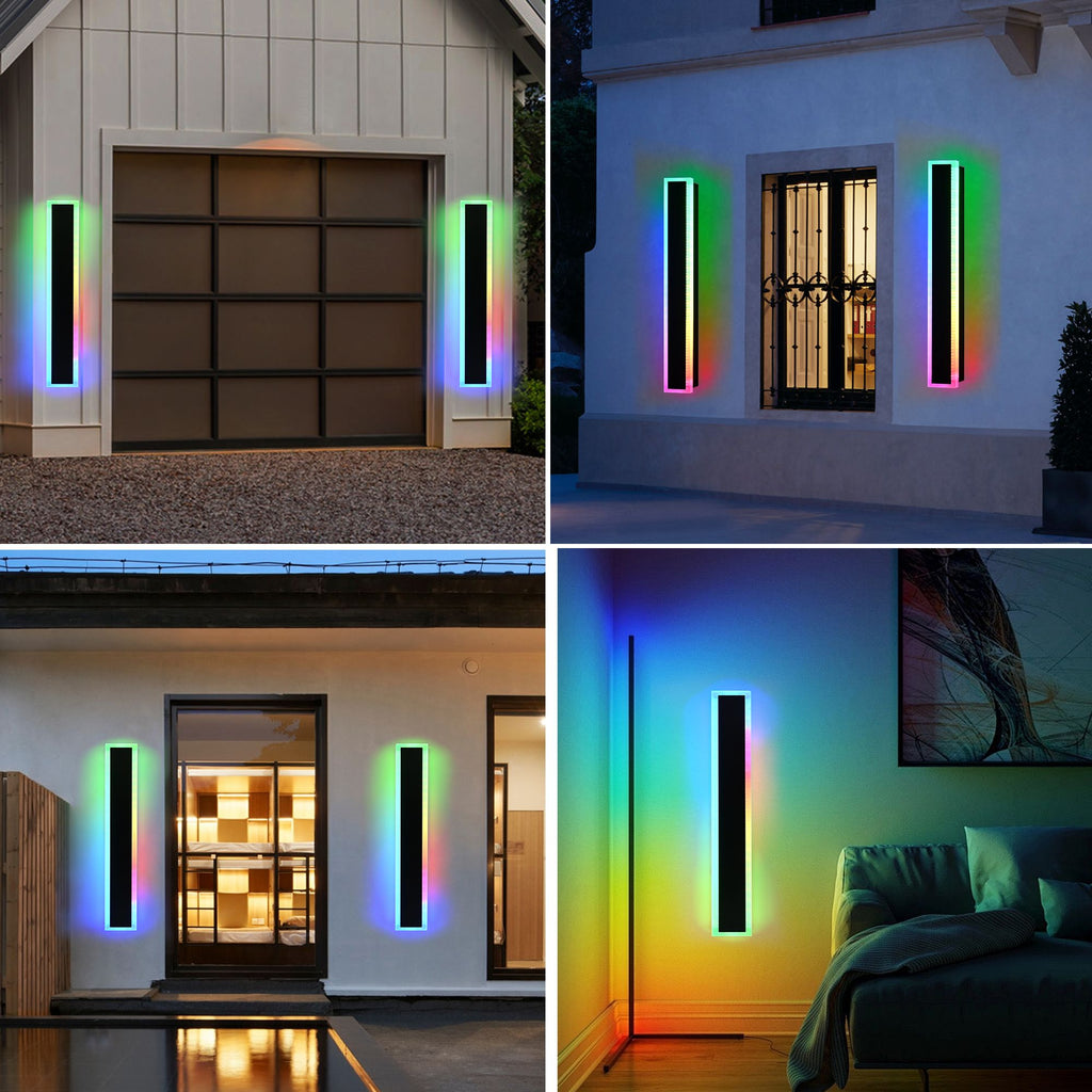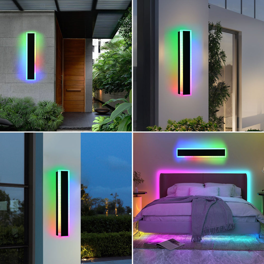 Dimmable and Speed Adjustable: The outdoor LED lights wall lights set of two come with remotes (3pcs AAA batteries not include). You can turn on, turn off, dim the wall lights and adjust the changing speed, control the long modern wall lights no matter they are outdoor or indoor. The RGB changing modes can loop different modes of automatic playback or remain in a fixed mode, giving you endless possibilities